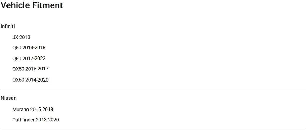 Compatible with (continued): NISSAN: 2015-23 Murano, 2013-20 Pathfinder, 2023 Z