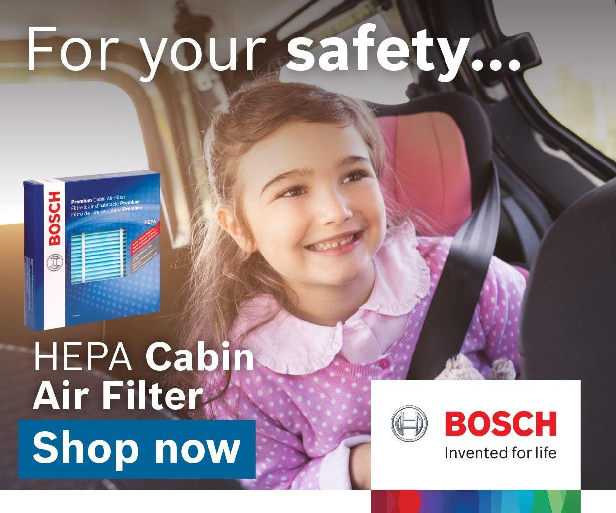 Bosch HEPA Cabin Air Filters provide true clean air for enhanced respiratory health without an added chemical odor neutralizer; Cabin air filters should be replaced at least once every 12 months (or every 12K miles)