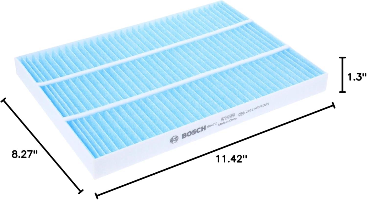 Bosch HEPA Cabin Air Filters provide true clean air for enhanced respiratory health without an added chemical odor neutralizer; Cabin air filters should be replaced at least once every 12 months (or every 12K miles)