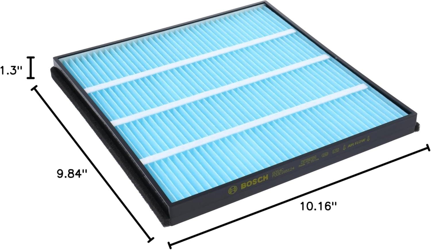 Bosch HEPA Cabin Air Filters provide true clean air for enhanced respiratory health without an added chemical odor neutralizer; Cabin air filters should be replaced at least once every 12 months (or every 12K miles)