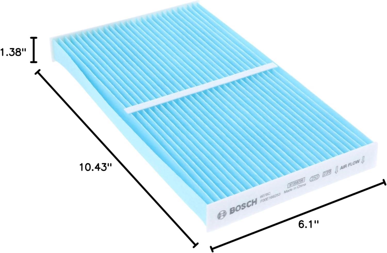Bosch HEPA Cabin Air Filters provide true clean air for enhanced respiratory health without an added chemical odor neutralizer; Cabin air filters should be replaced at least once every 12 months (or every 12K miles)