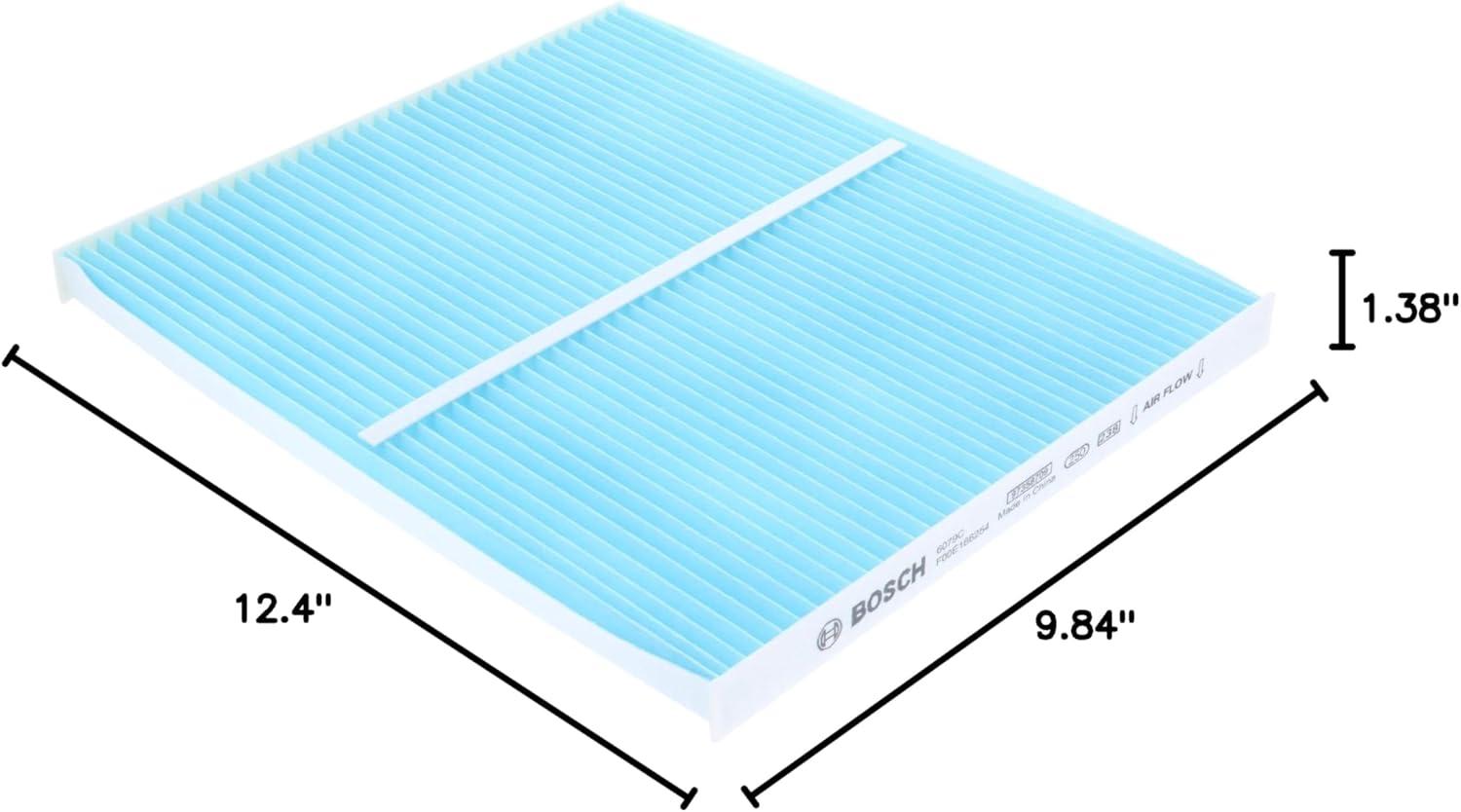 Bosch HEPA Cabin Air Filters provide true clean air for enhanced respiratory health without an added chemical odor neutralizer; Cabin air filters should be replaced at least once every 12 months (or every 12K miles)
