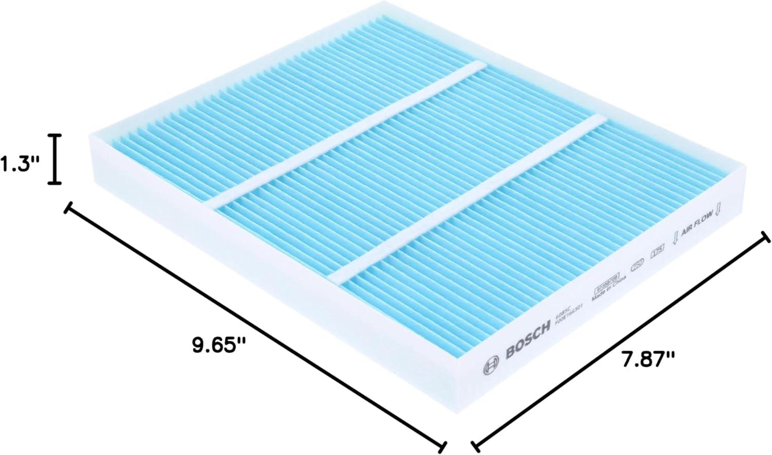 Bosch HEPA Cabin Air Filters provide true clean air for enhanced respiratory health without an added chemical odor neutralizer; Cabin air filters should be replaced at least once every 12 months (or every 12K miles)