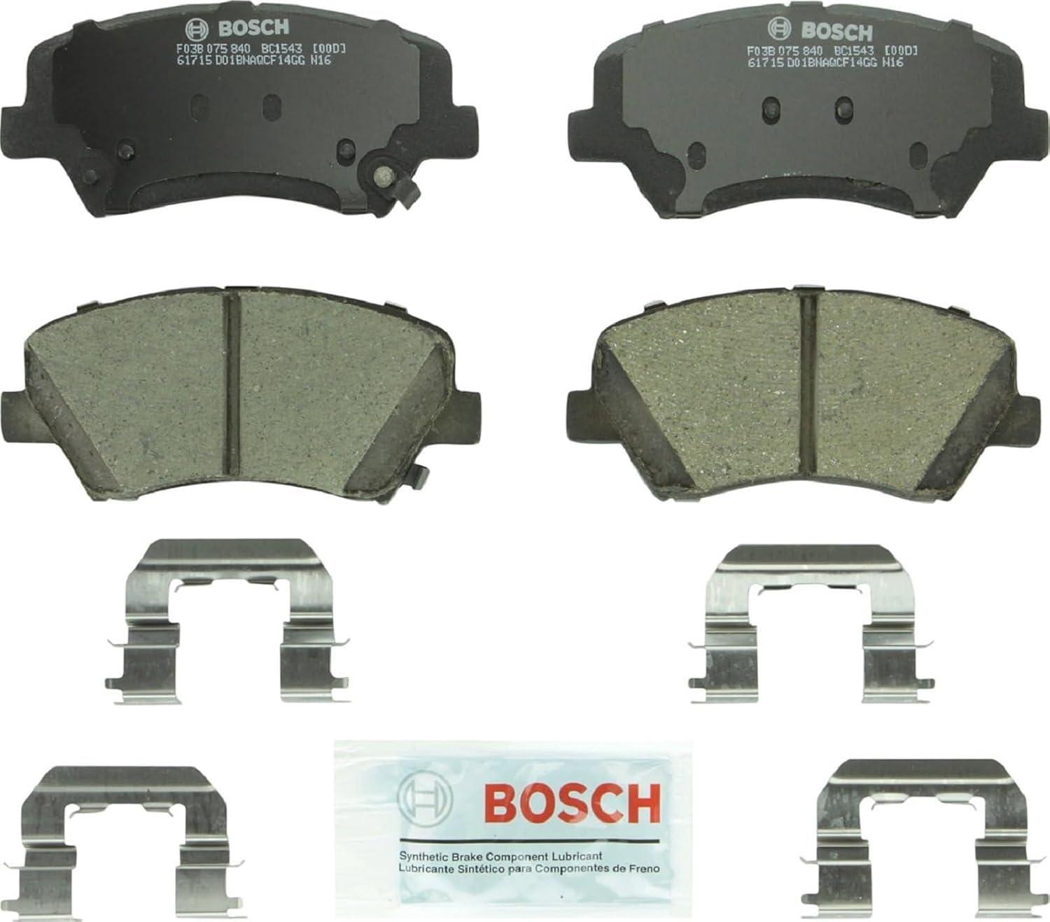 Today, one of every three Asian, Domestic, and European vehicles on the road in North America includes Bosch braking components. That's because Bosch has been a key player in the braking industry since applying for its first brake system design patent in 1936. The Bosch QuietCast line draws on this robust experience to deliver OE quality performance, industry-leading strength and durability, and exclusive innovations including Molded Shim Technology (MST). QuietCast pads feature the industry's best pre-attached OE style multilayer rubber core shims, ensuring the highest quality bond between rubber and steel, for lower noise, increased strength, and exemplary corrosion resistance. The proprietary Ceramic friction material is meticulously engineered to achieve robust performance, exceptional stopping power, and quiet operation with low dust. Corrosion and rust resistant powder-coated backing plates deliver increased product life. OE style slots and chamfers ensure premium quality, fit, and function. Set includes pads for 1 axle (2 wheels), hardware kit (where available), and synthetic lubricant for reduced resistance on sliding contact points. Compatible with select vehicles (Note: vehicle trim level may affect fitment – verify specific vehicle fitment details with fit checker above).