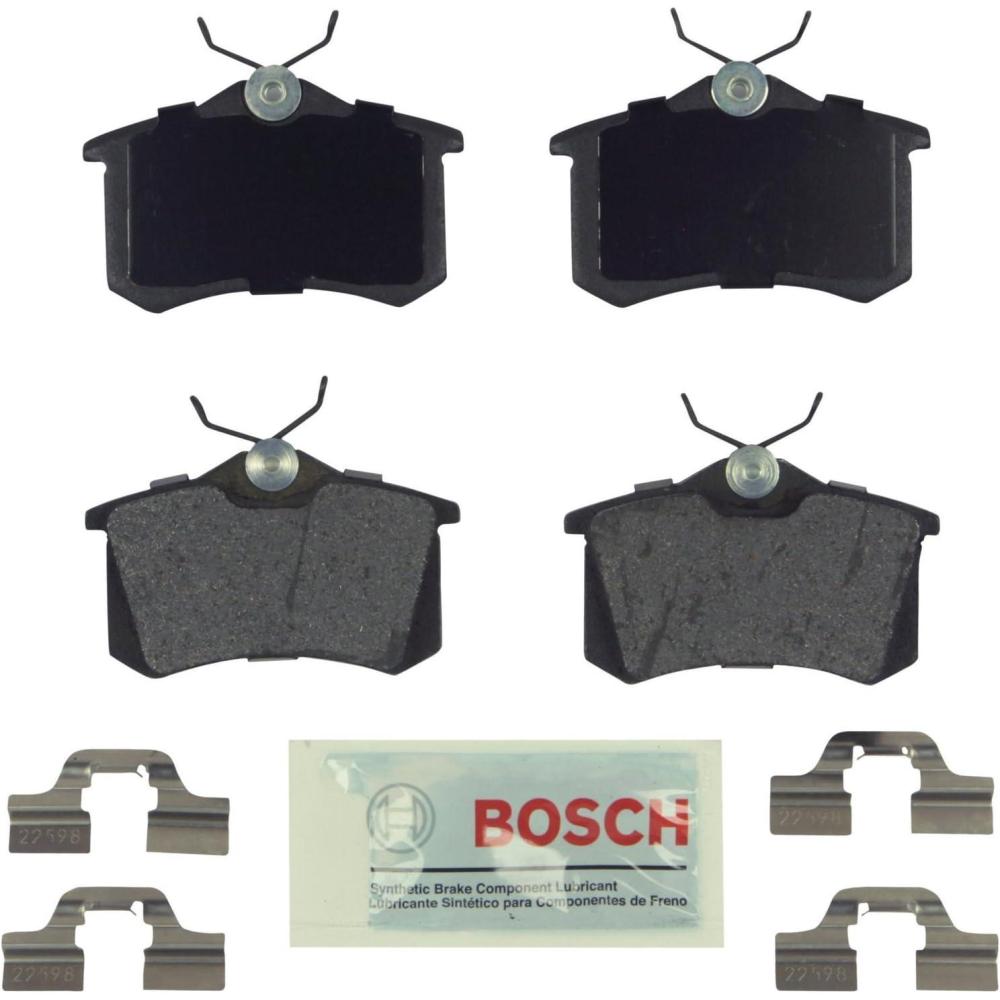 Bosch Blue Disc Brake Pads were created for the everyday driver, and benefit from the same robust testing and engineering processes as our premium QuietCast braking line. Bosch Blue offers advanced, platform specific friction formulations for optimal performance. Blue delivers superb noise dampening capabilities with OE-style multi-layer shims. Rust inhibitive coating prevents the formation of rust and corrosion which can lead to pad degradation and noisy braking. OE design slots and chamfers deliver superb braking performance and efficient, quiet stops. Precision manufactured to strict tolerances for guaranteed fit, and simple, hassle-free installation. Supplied with synthetic lubricant for reduced resistance on sliding contact points. Set includes brake pads and hardware for 1 axle (2 wheels). NOTE: Pads come wrapped in a protective blue shop towel within the box.