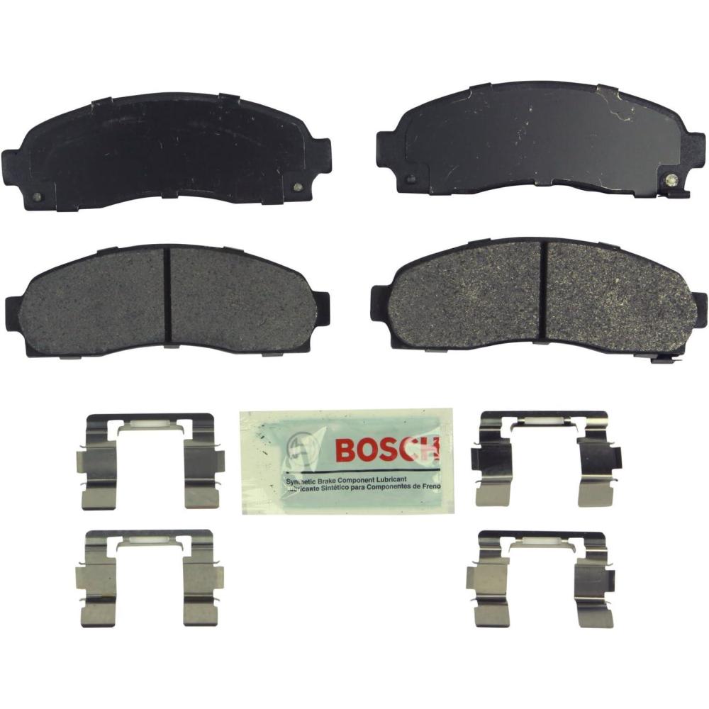 Bosch Blue Disc Brake Pads were created for the everyday driver, and benefit from the same robust testing and engineering processes as our premium QuietCast braking line. Bosch Blue offers advanced, platform specific friction formulations for optimal performance. Blue delivers superb noise dampening capabilities with OE-style multi-layer shims. Rust inhibitive coating prevents the formation of rust and corrosion which can lead to pad degradation and noisy braking. OE design slots and chamfers deliver superb braking performance and efficient, quiet stops. Precision manufactured to strict tolerances for guaranteed fit, and simple, hassle-free installation. Supplied with synthetic lubricant for reduced resistance on sliding contact points. Set includes brake pads and hardware for 1 axle (2 wheels). NOTE: Pads come wrapped in a protective blue shop towel within the box.